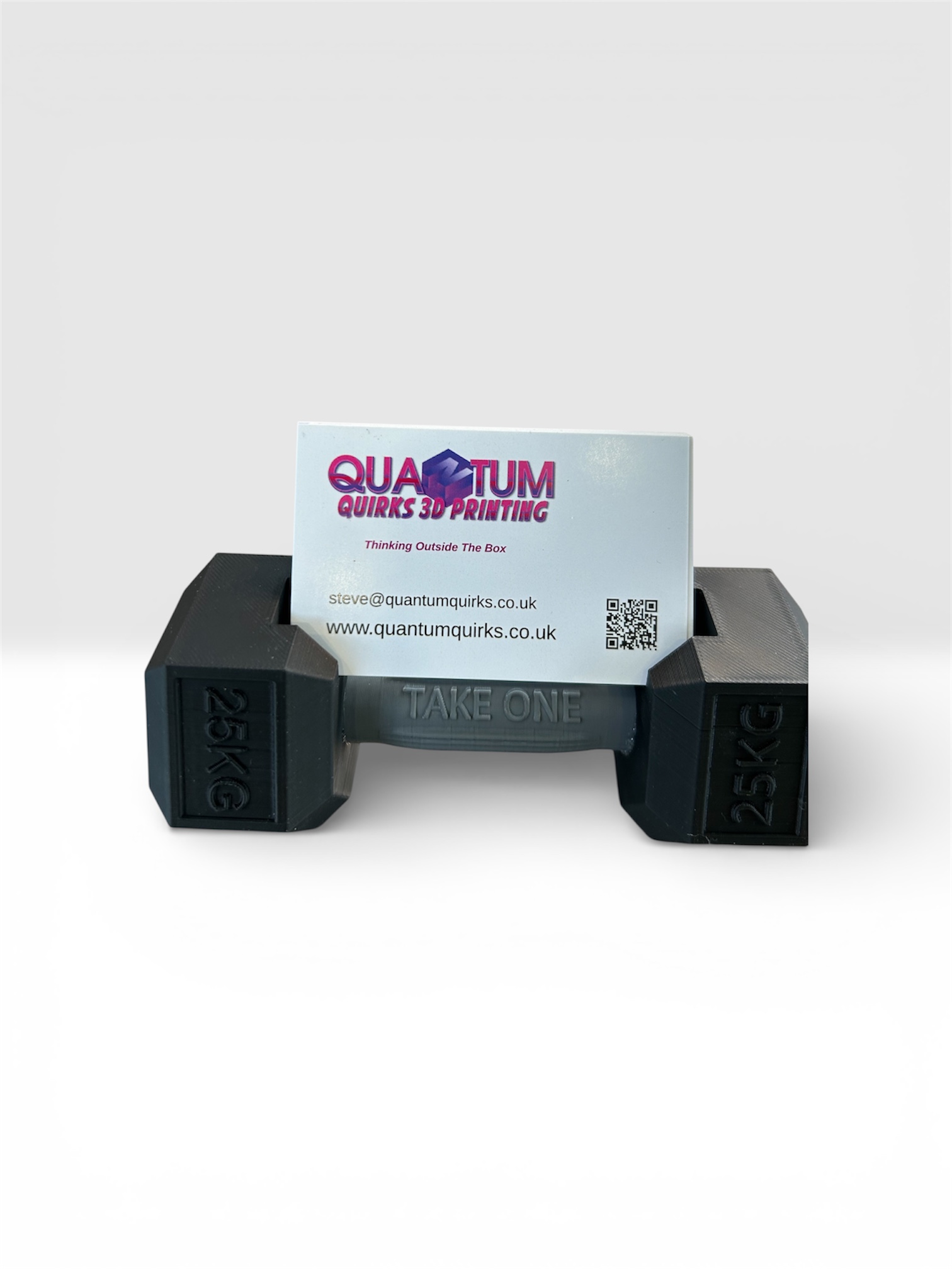 This Dumbbell Business Card Holder is a stylish and practical office accessory. Made in sleek black, this holder is perfect for personal trainers or any office professional looking to make a statement with their business cards. Its unique design featuring dumbbell weights adds a touch of personality to the general office environment, making it a standout piece for any desk. Keep your business cards organized and displayed in style with this eye-catching accessory. £9.99 FREE POSTAGE too!